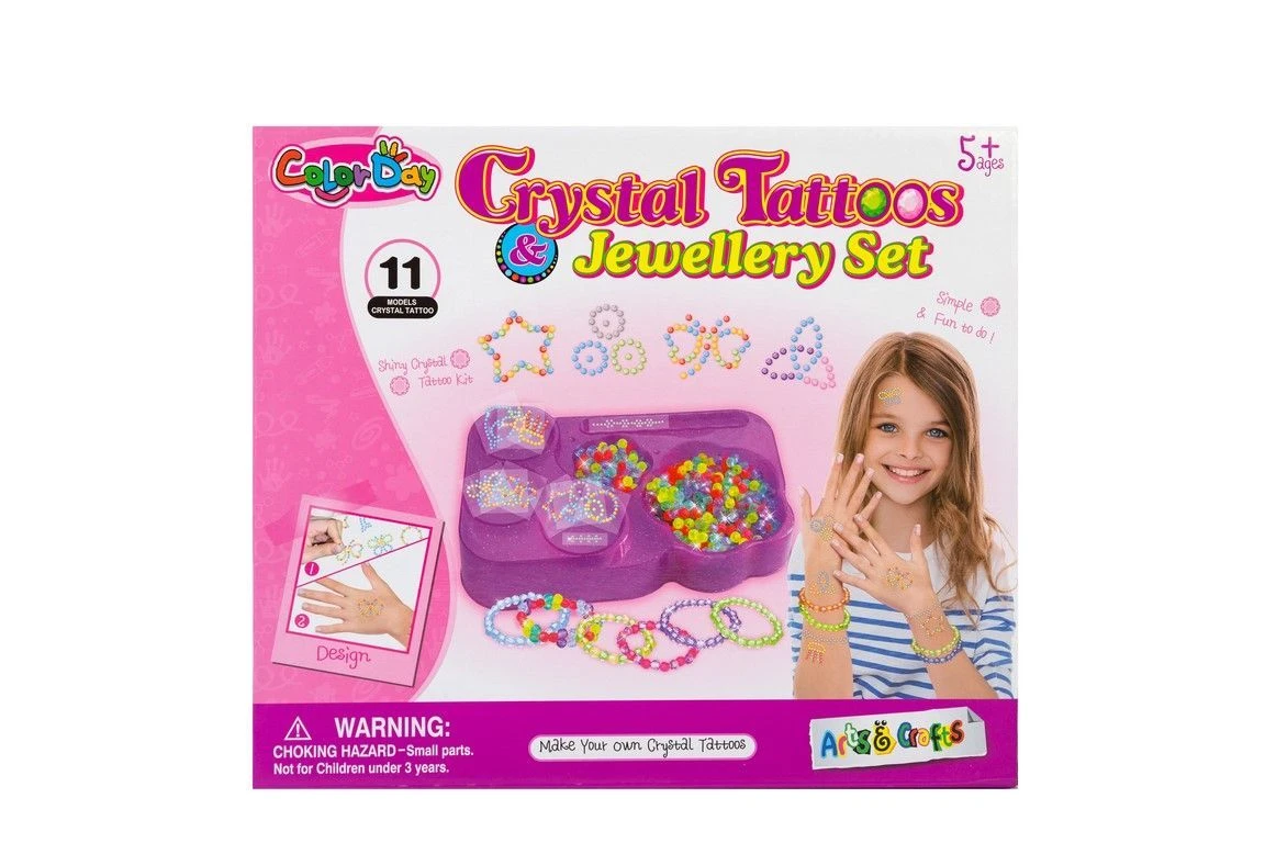 Zestaw ozdób do wykonania bransoletek oraz kryształkowe tatuaże