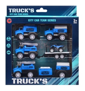 Zestaw pojazdów policyjnych spodoba się każdemu dziecku zainteresowanemu funkcjonowaniem miasta. W skład zestawu wchodzą cztery ciężarówki, które posiadają napęd typu pull back. Wykonanie z wysokiej jakości materiałów z dbałością o detale sprawi, że zestaw aut będzie długo służył maluchowi.