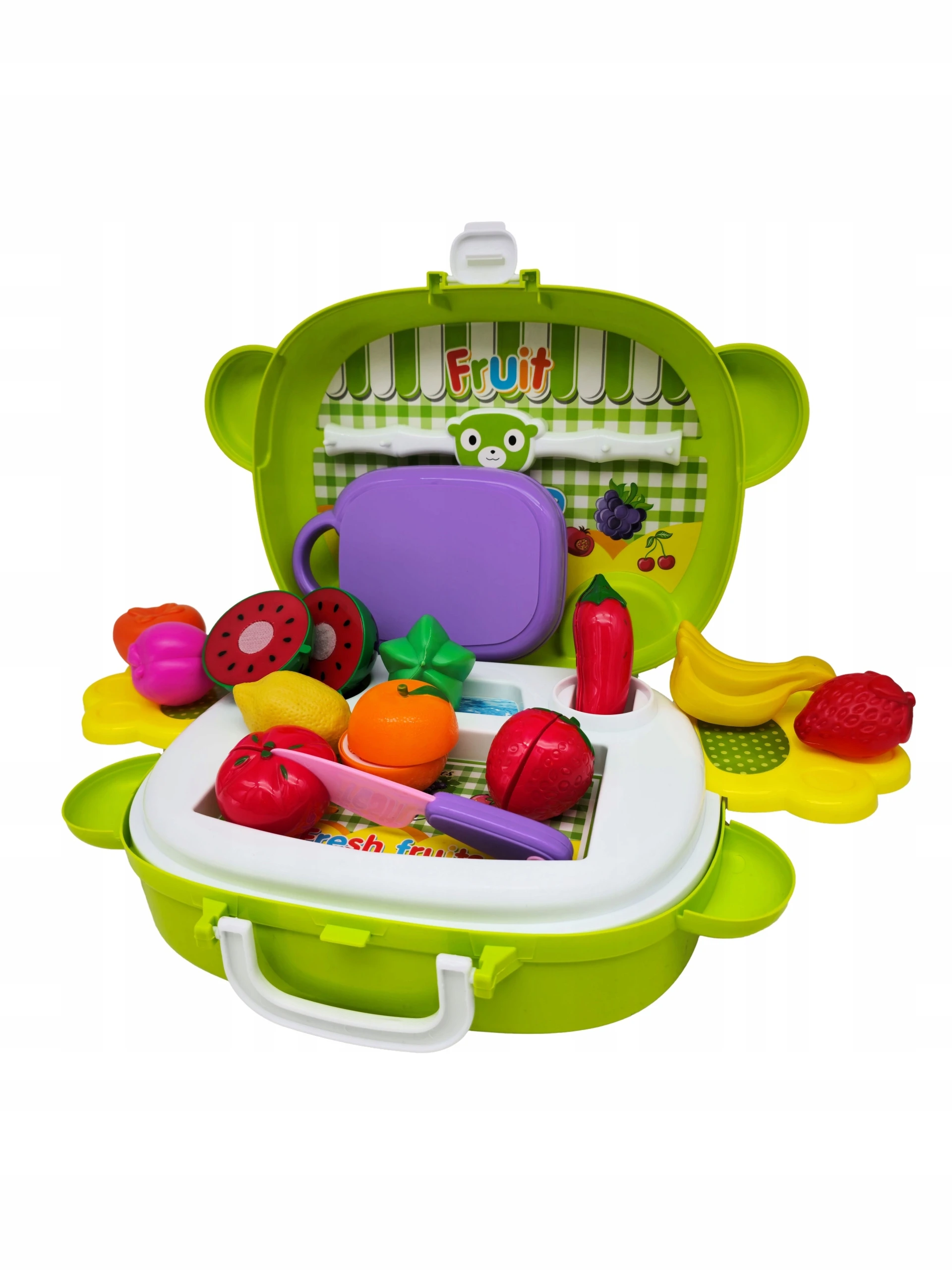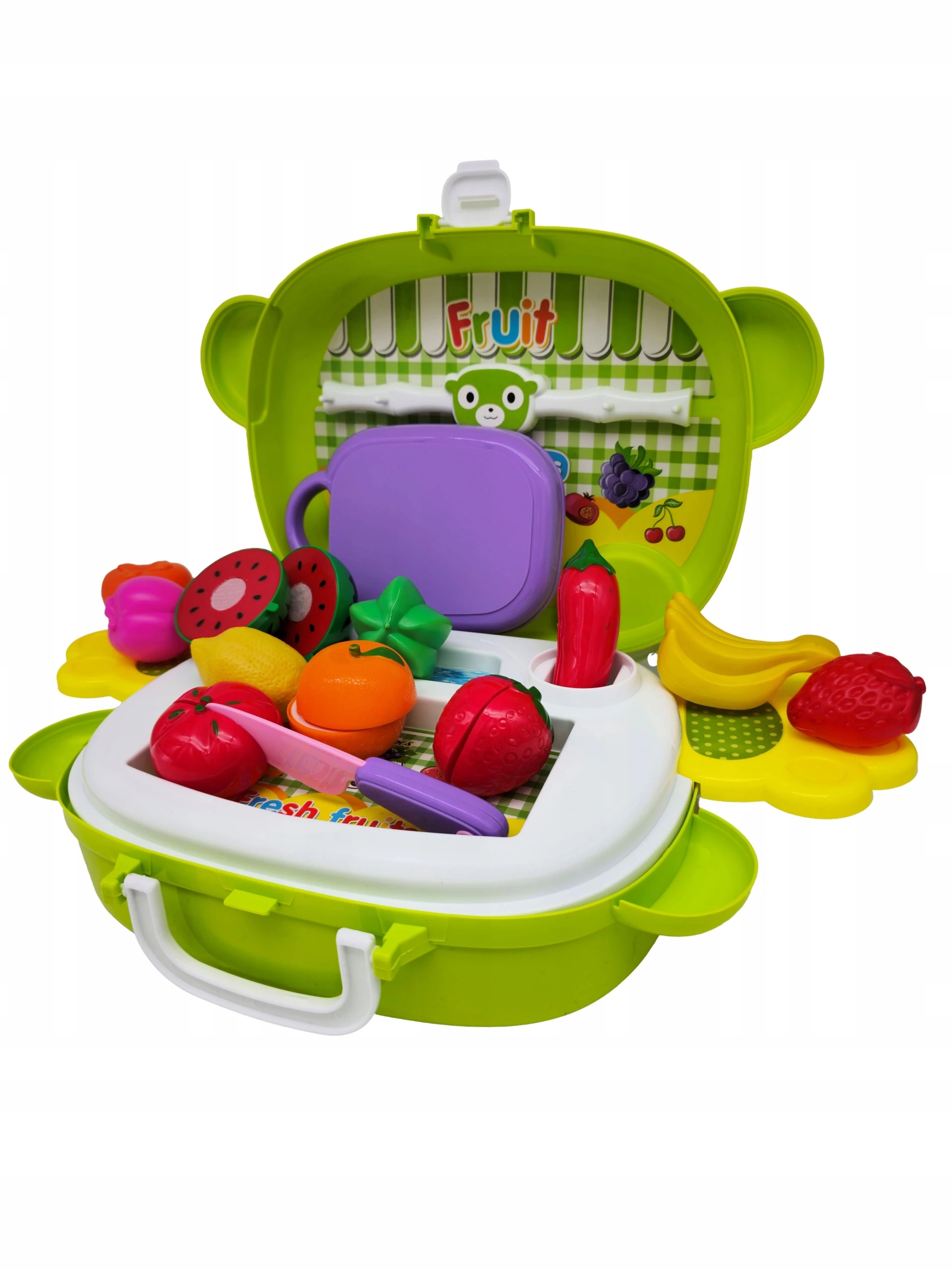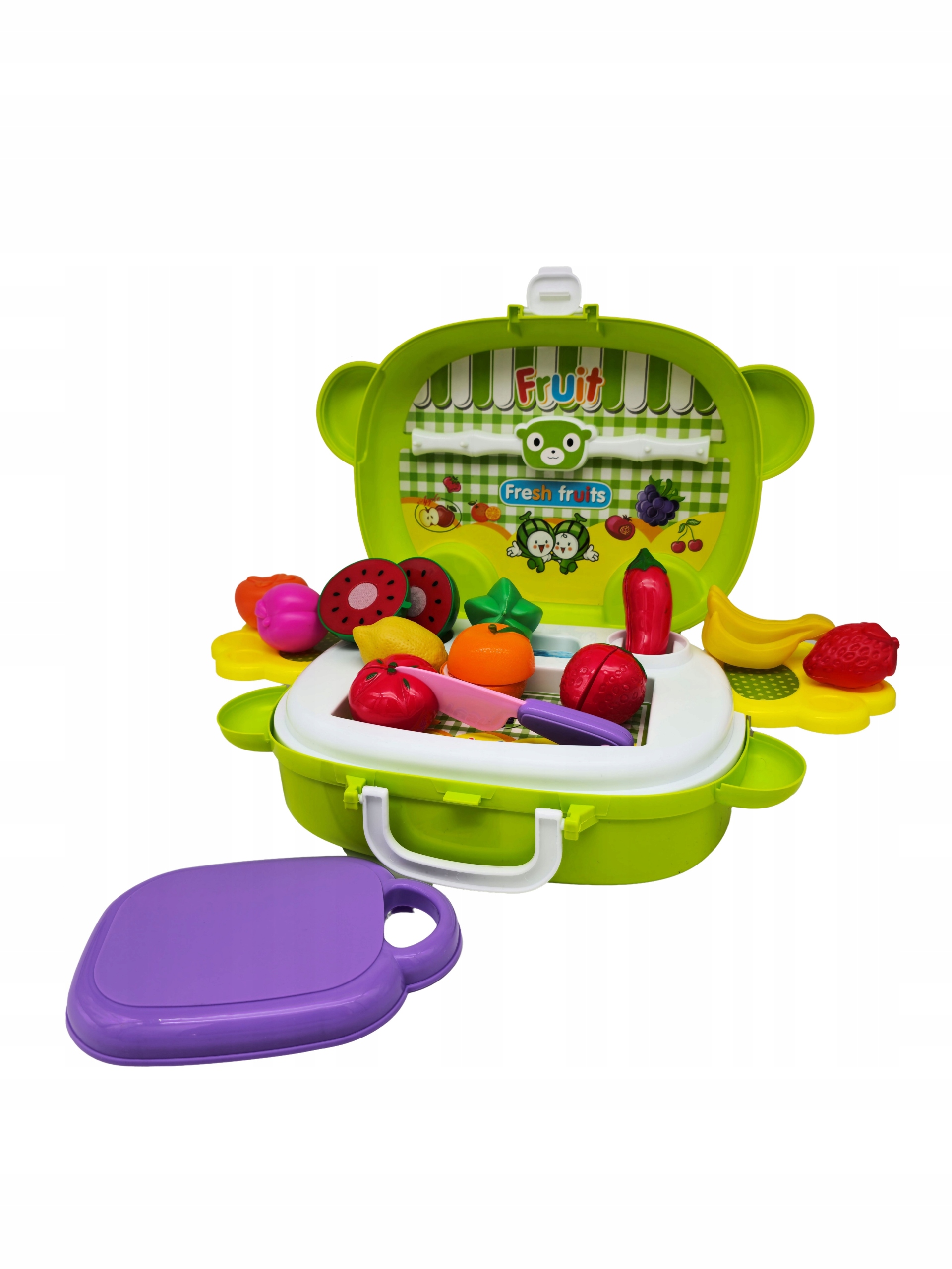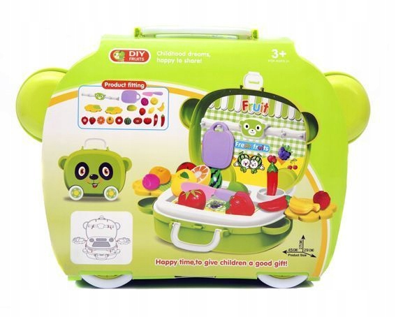Owoce do krojenia to zestaw zabawek, który skradnie serce niejednego malucha, lubiącego naśladować dorosłych. Zestaw ma kształt walizki umożliwiającej wygodne przeniesienie jej w dowolne miejsce.