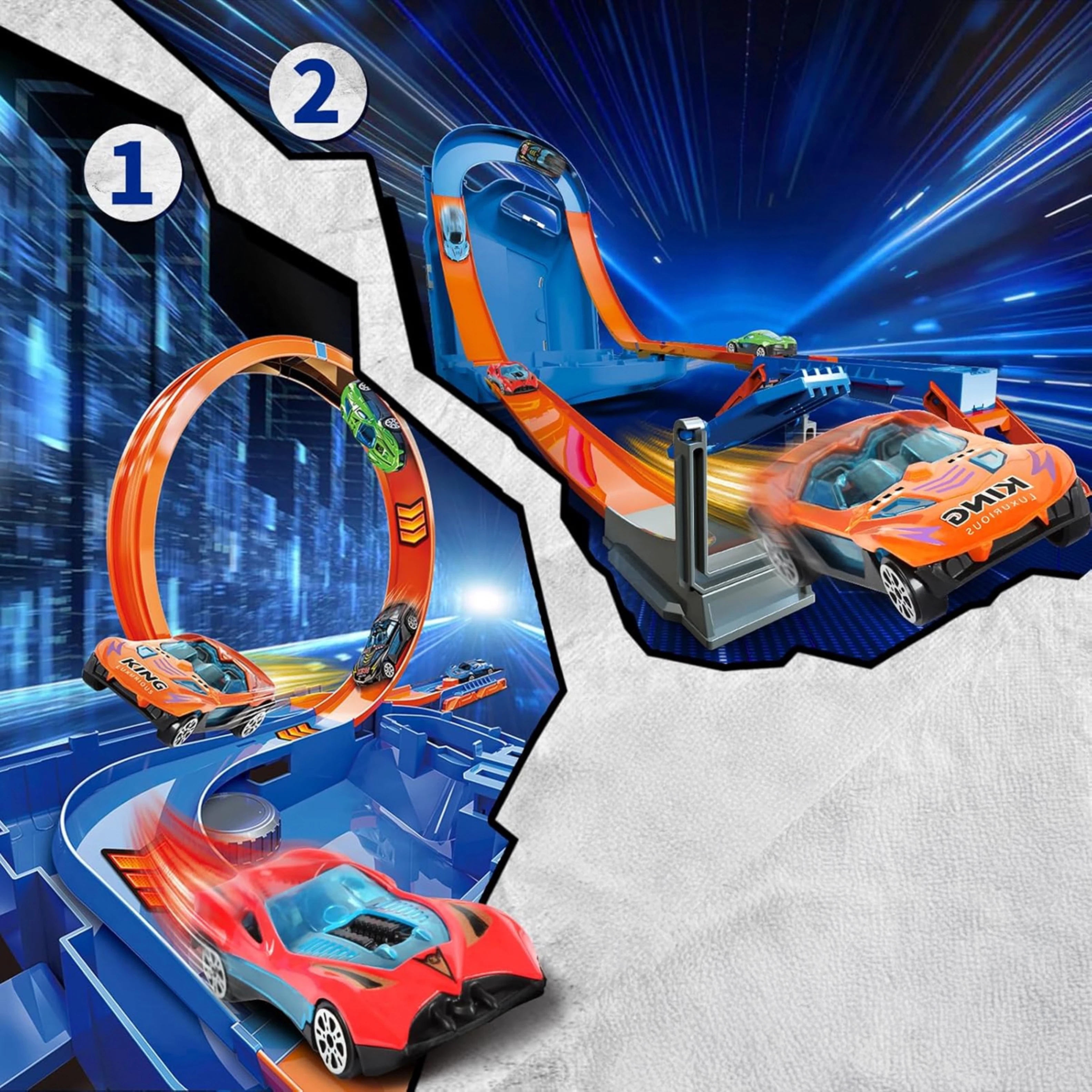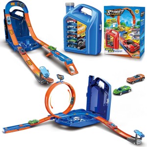 Street Convoy Engine Oil Bottle to niesamowity zestaw 2w1 ukryty wewnątrz gigantycznego kanistra na olej. Jednym ruchem zmienisz go w kaskaderską pętlę 360° lub dwupasmowy tor zjazdowy o długości ponad 70 cm. To idealne połączenie mobilnego garażu z ekstremalną zabawą w wyścigi.